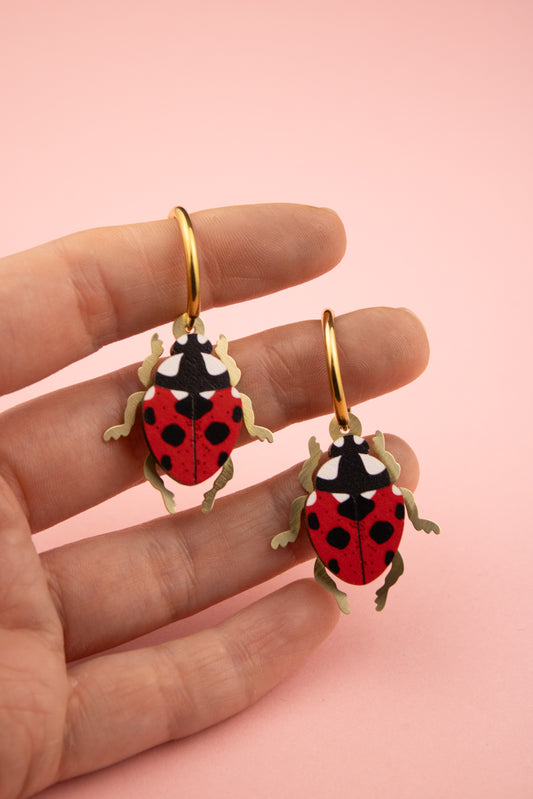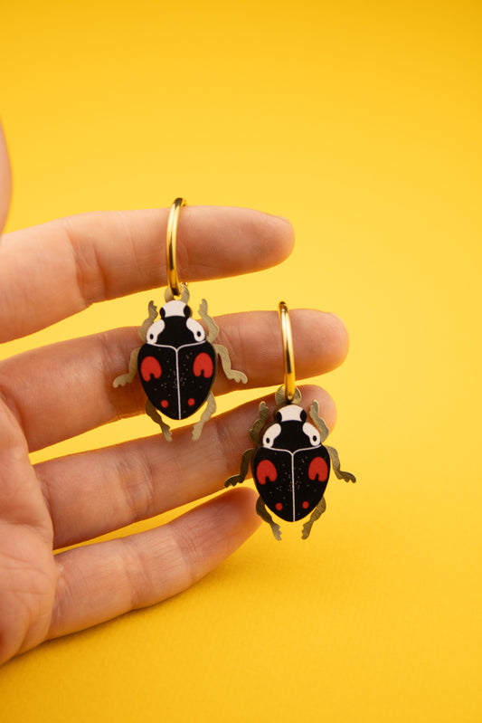 Boucles d'oreilles coccinelle arlequin rouge et noir