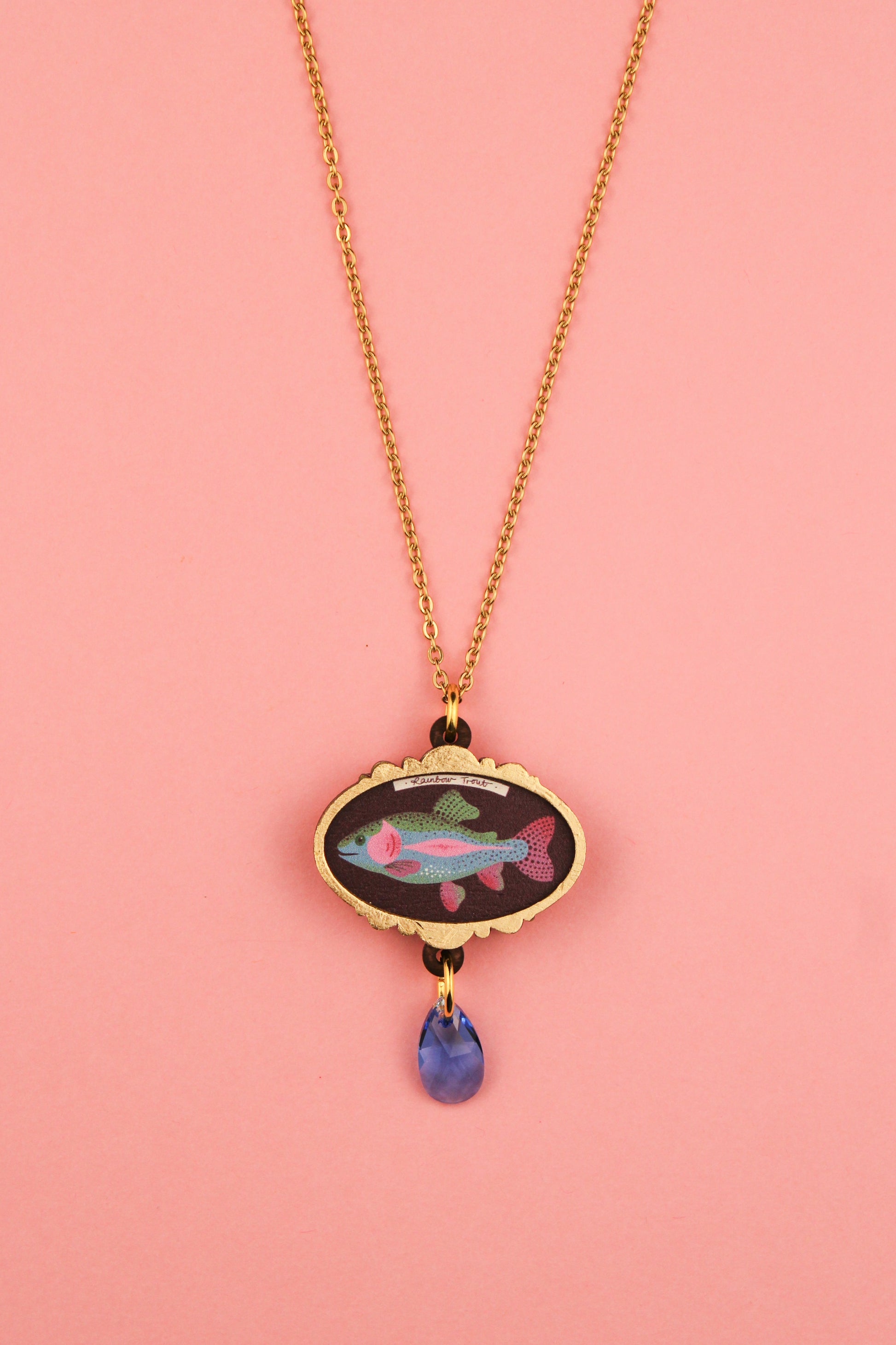 A colourful Rainbow Trout illustration in it's very own tiny gilt frame.