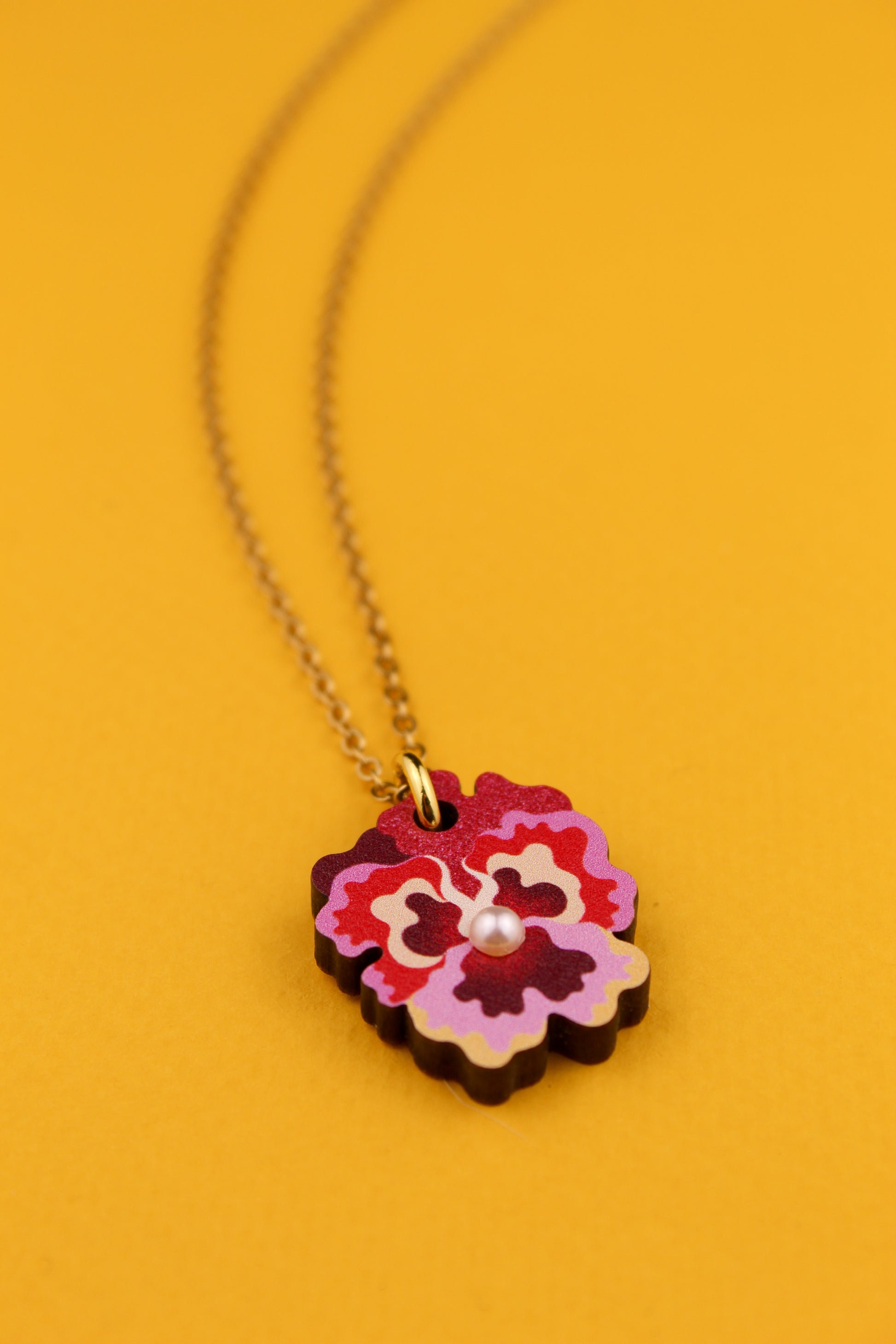 Each Pansy is made from printed, laser cut maple wood and finished with a faux pearl.