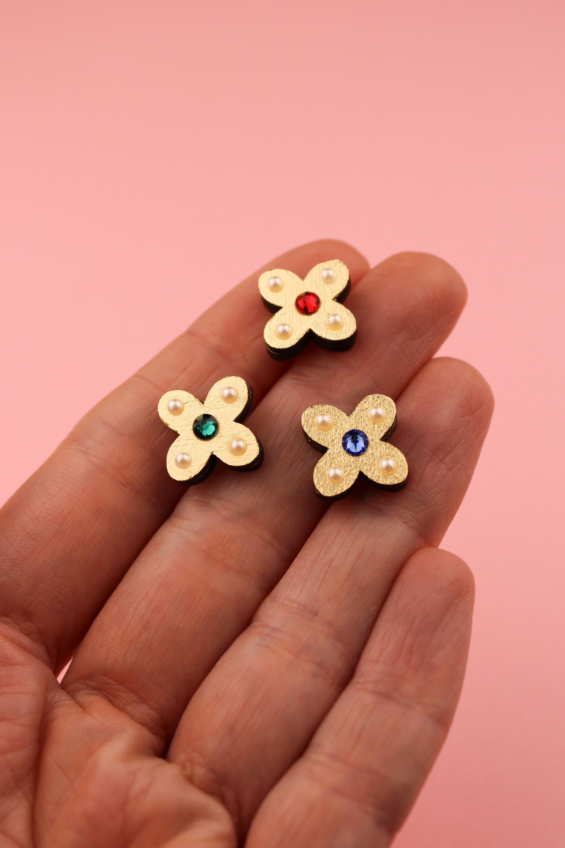To add extra sparkle each earring is finished with a coloured glass crystal and 4 faux pearls.
